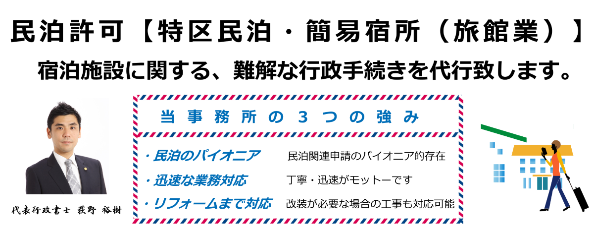※当事務所では「外国人滞在施設経営事業特定認定」を「民泊許可」と表現しています。