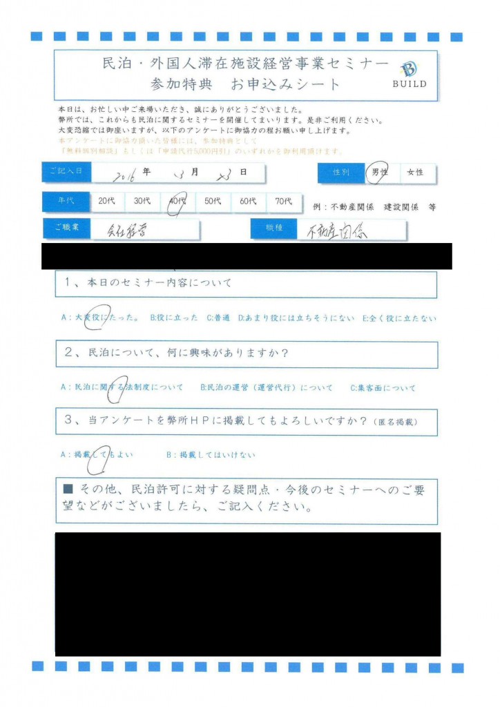 セミナー内容を、より皆様にご満足頂けるようブラッシュアップを行い、改めて民泊関連セミナーを企画・運営して参ります。